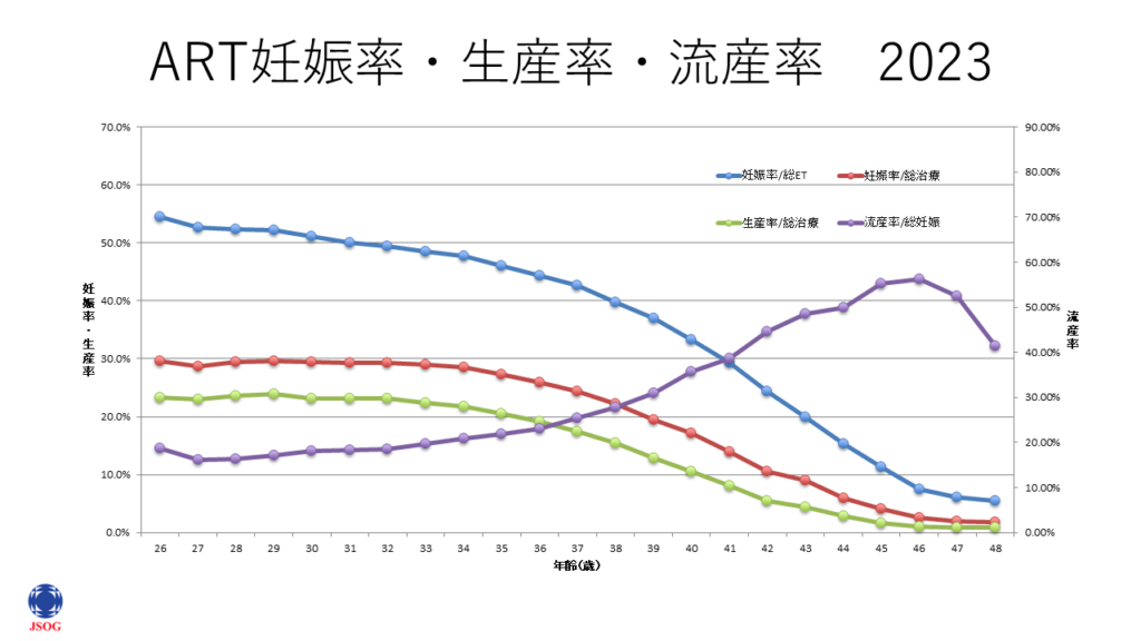 日本で最初の体外受精による赤ちゃんが誕生してから、既に40年以上経ち、たくさんの赤ちゃんが体外受精で誕生してきました。そして、現在では日本で産まれた赤ちゃんの約9人に1人が生殖補助医療(ART)で誕生しています。(2023年)このようにARTは不妊治療として確立されておりますが、加齢による影響で、年齢が高くなればなるほど、妊娠率や出生率は低下し、流産率は上昇していきます。 日本の治療成績(日本産科婦人科学会 2023年報告) 日本産科婦人科学会 治療成績(PDF) 日本産科婦人科学会 ARTデータブックより 治療成績にもどる